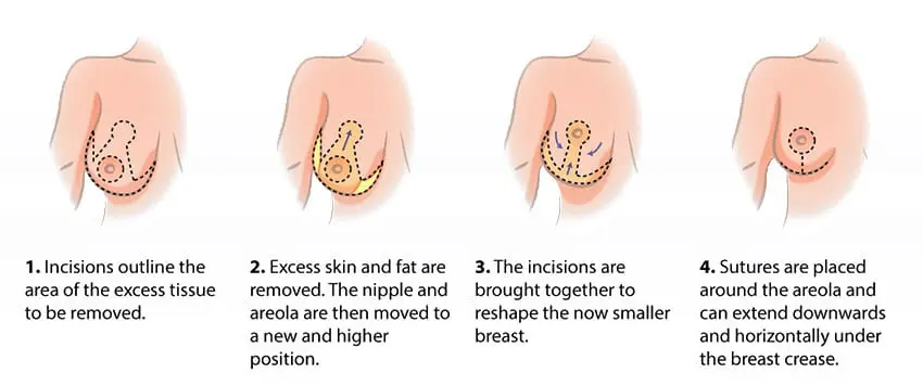 During the breast reduction procedure, Dr. Lamblet will remove excess skin, breast fat and glandular tissue.